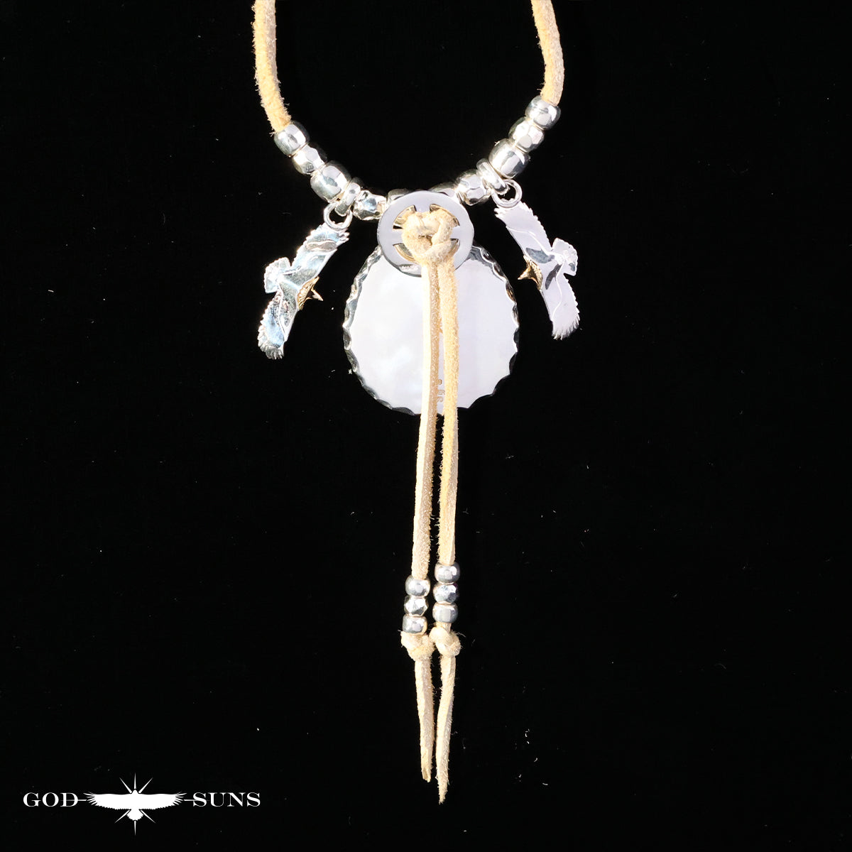 全体を鹿紐とSV無垢ビーズ各種でまとめ。カジュアルな春先のコーディネートにも合わせやすいバランスの取れたシルエットが特徴的です。