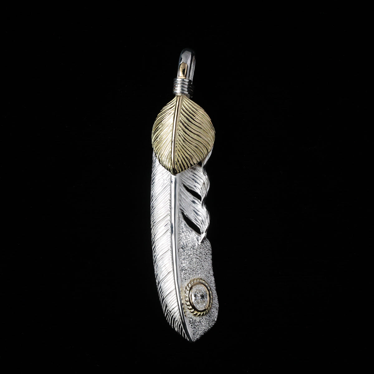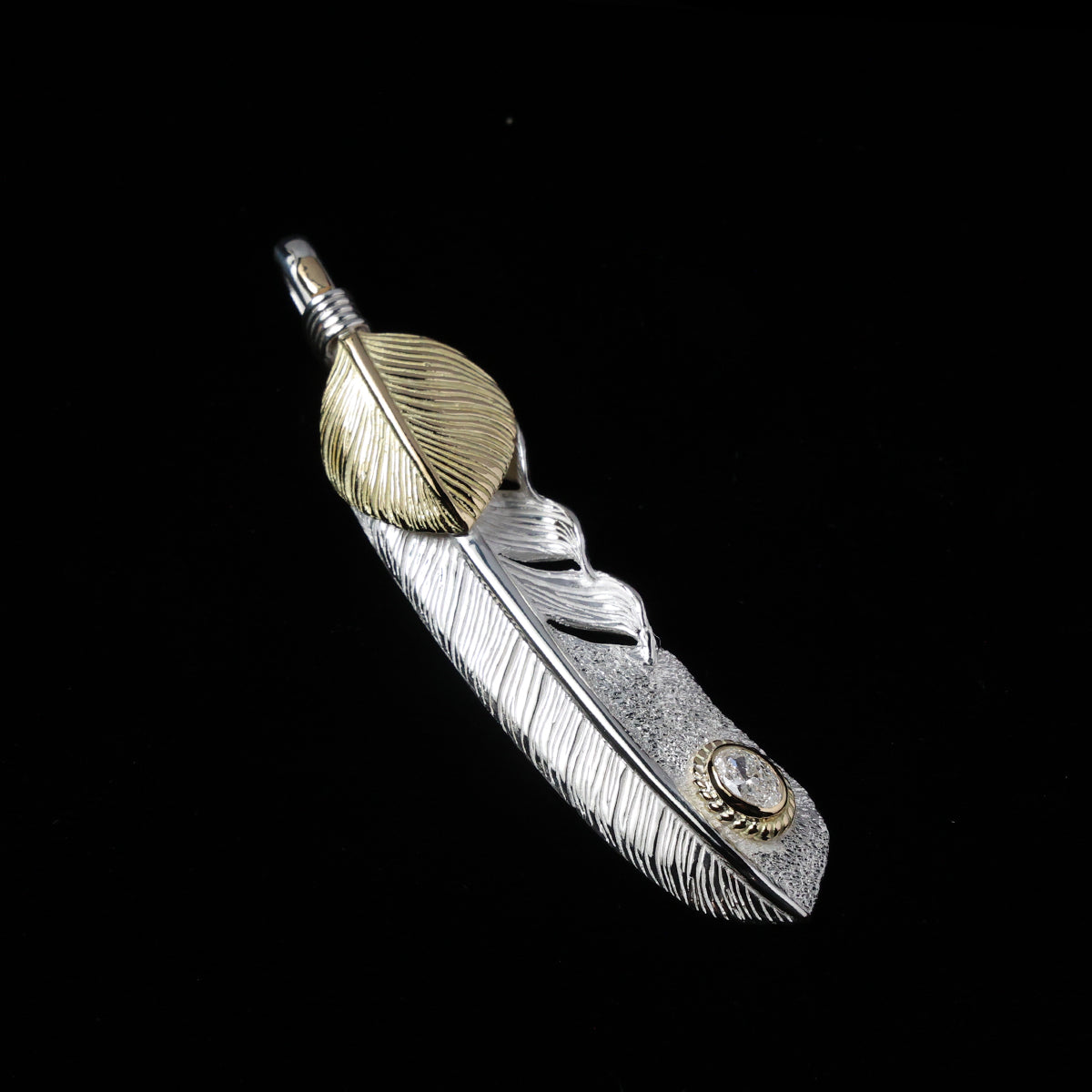 金ハートフェザーLL金縄"ラボグラウンダイヤモンド"(右向き)ダイヤモンド-ダスト加工