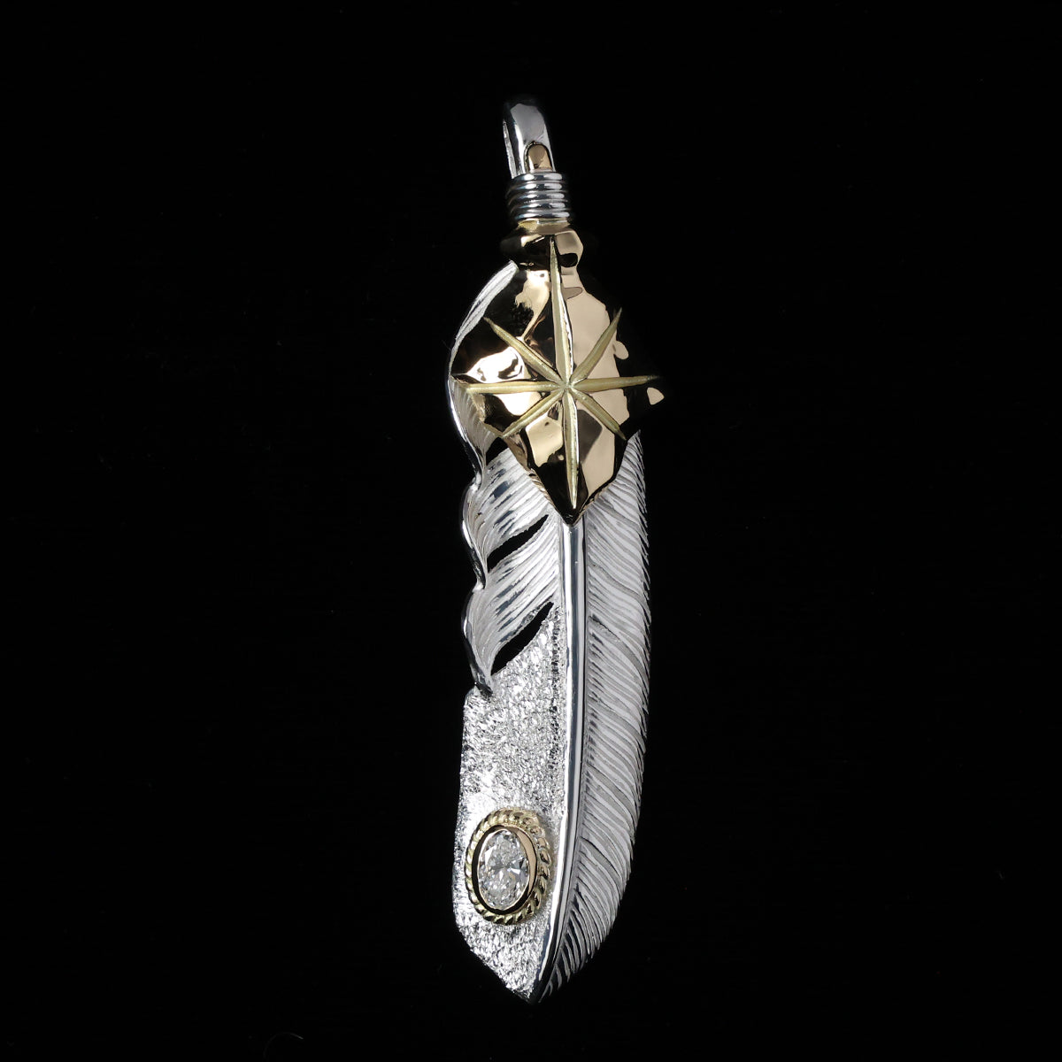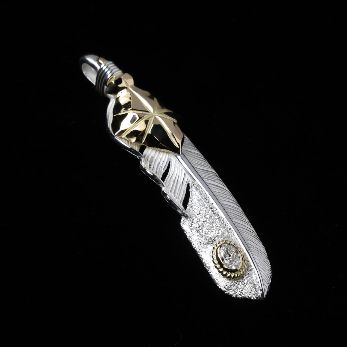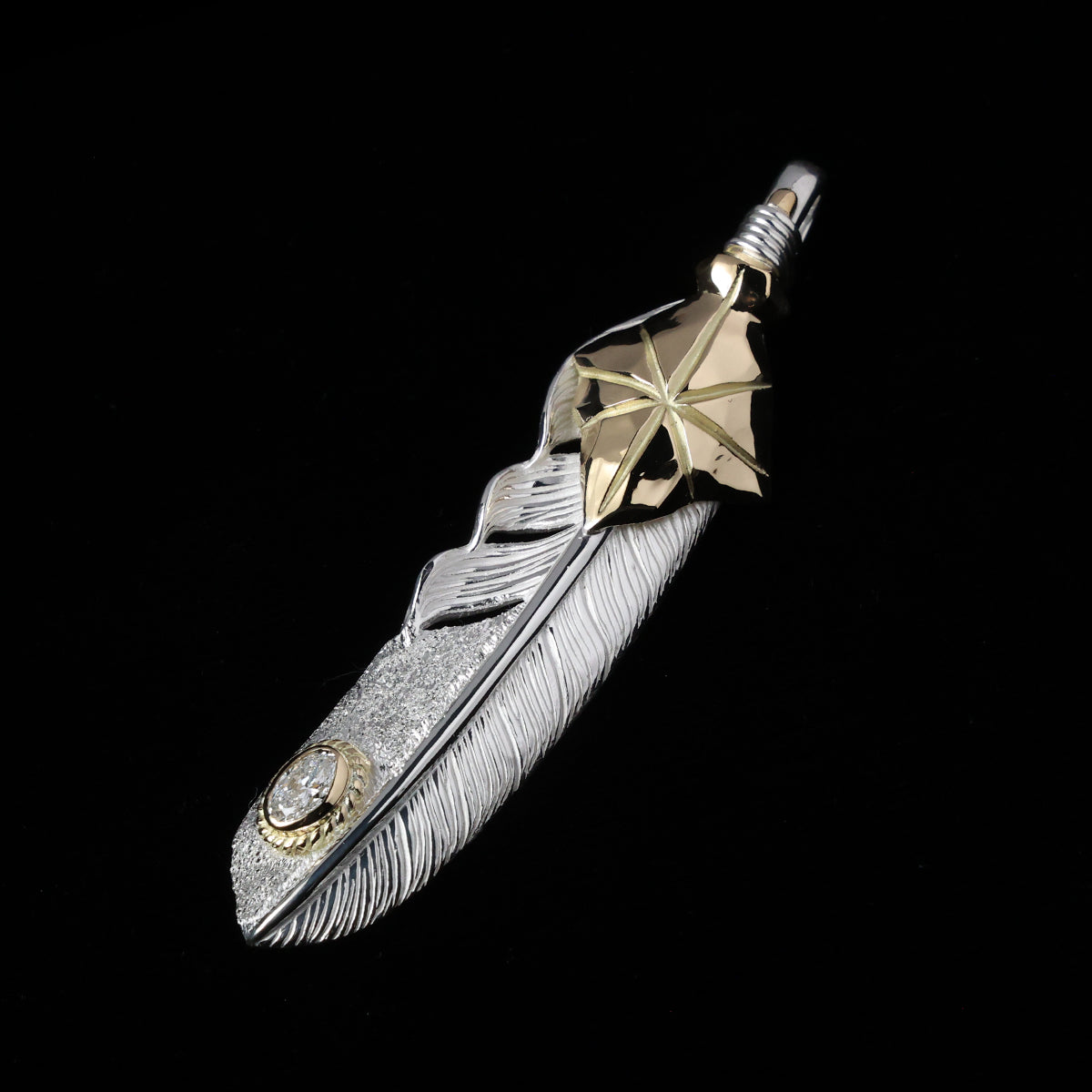 特大K18矢尻フェザー金縄"ラボグラウンダイヤモンド"(左向き)ダイヤモンド-ダスト加工