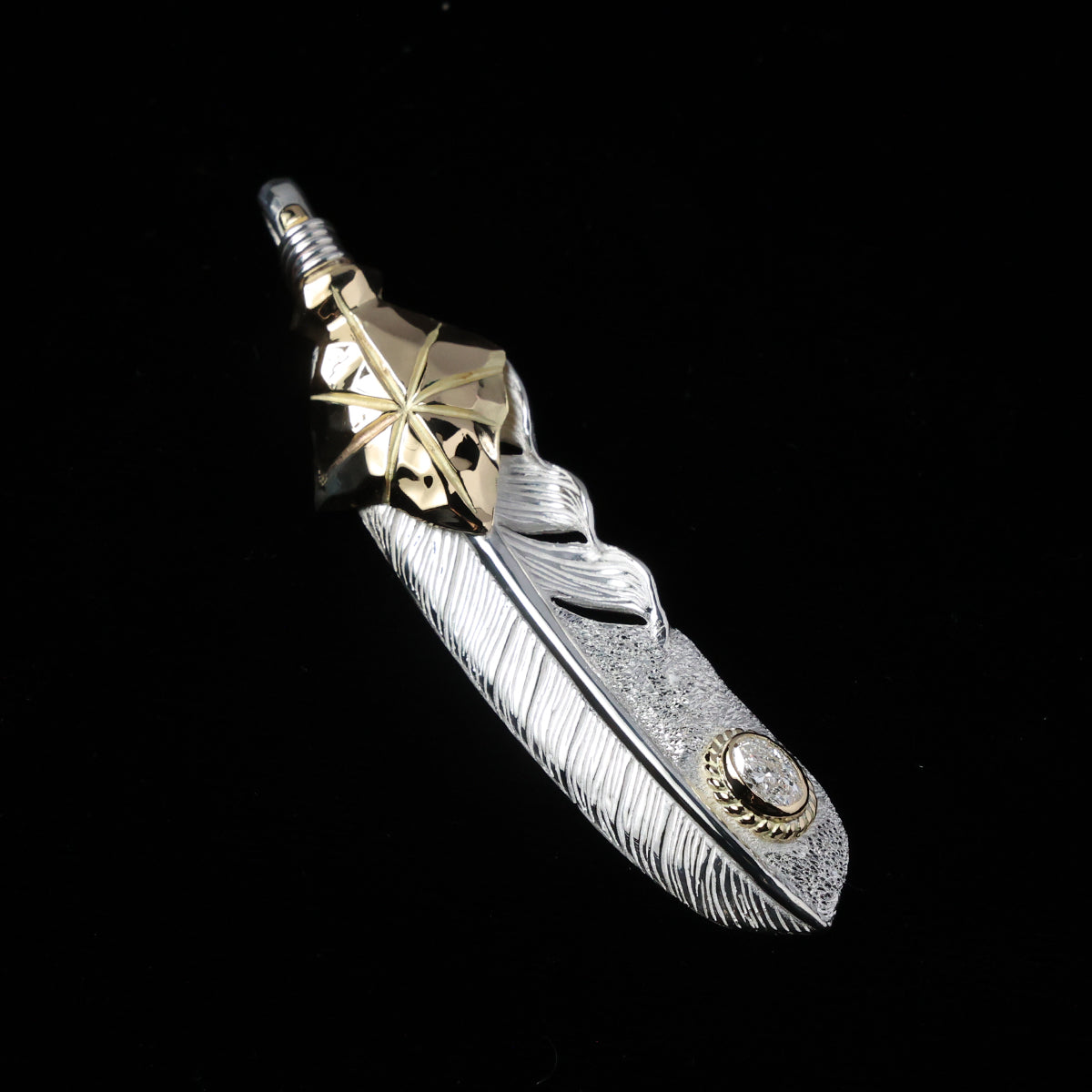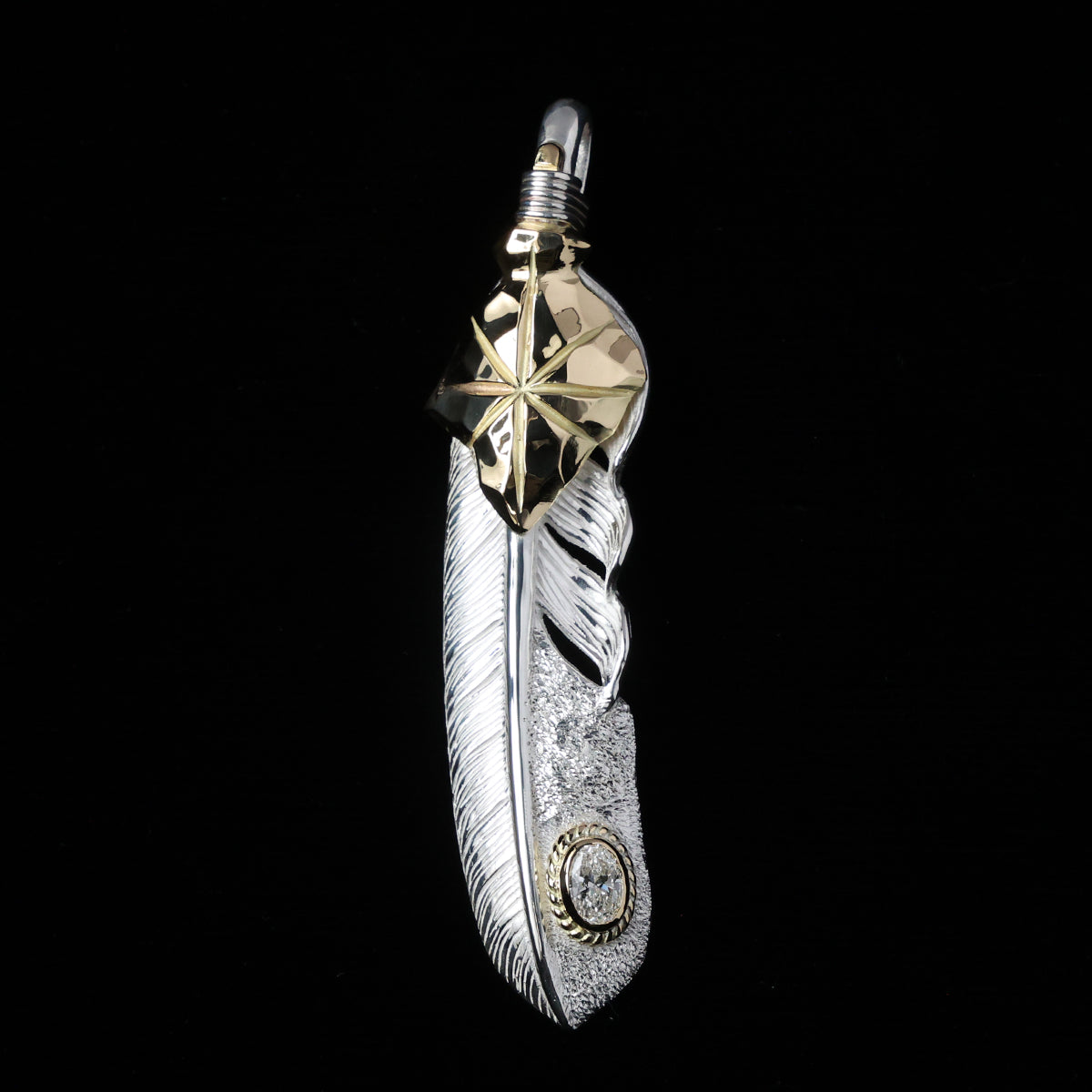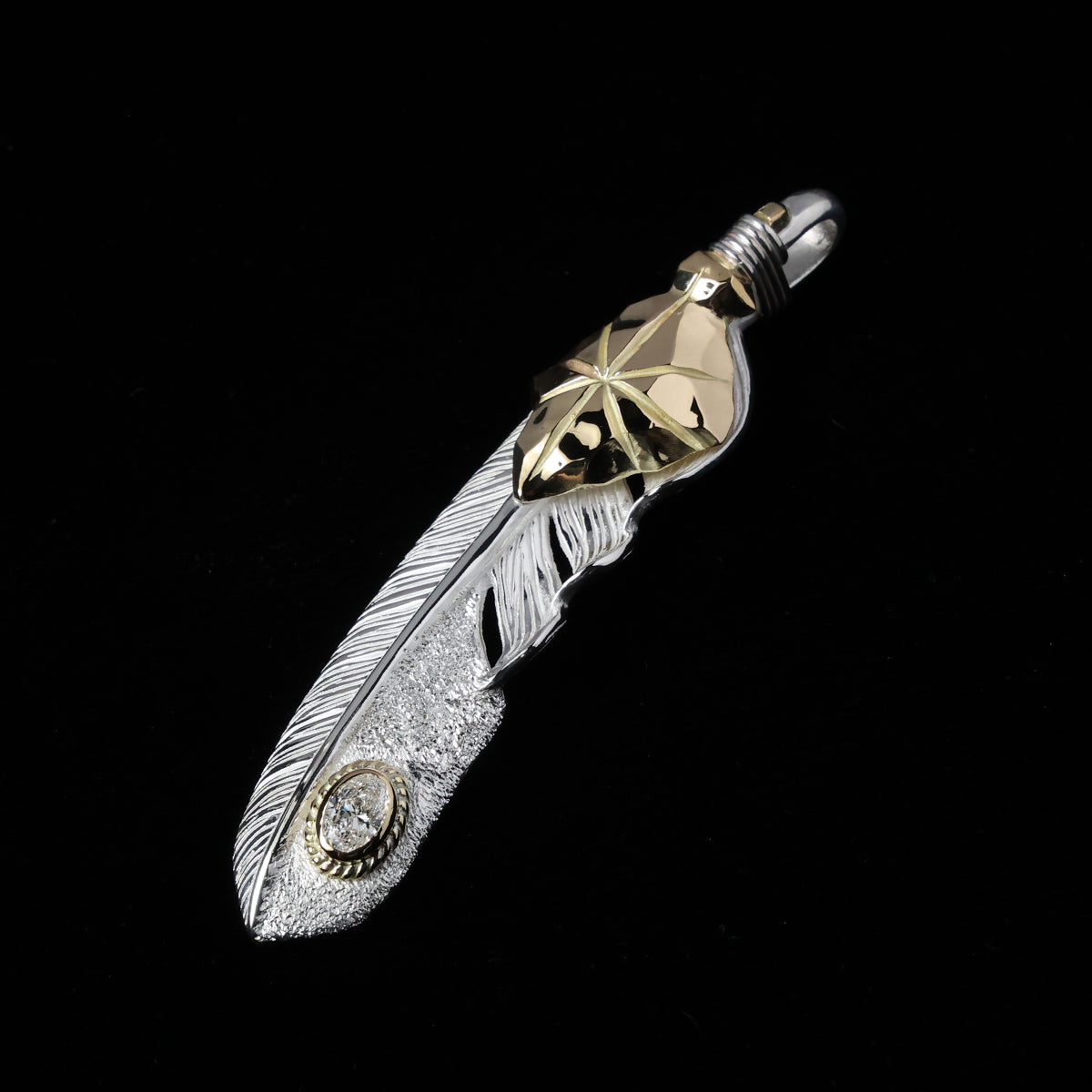 特大K18矢尻フェザー金縄"ラボグラウンダイヤモンド"(右向き)ダイヤモンド-ダスト加工