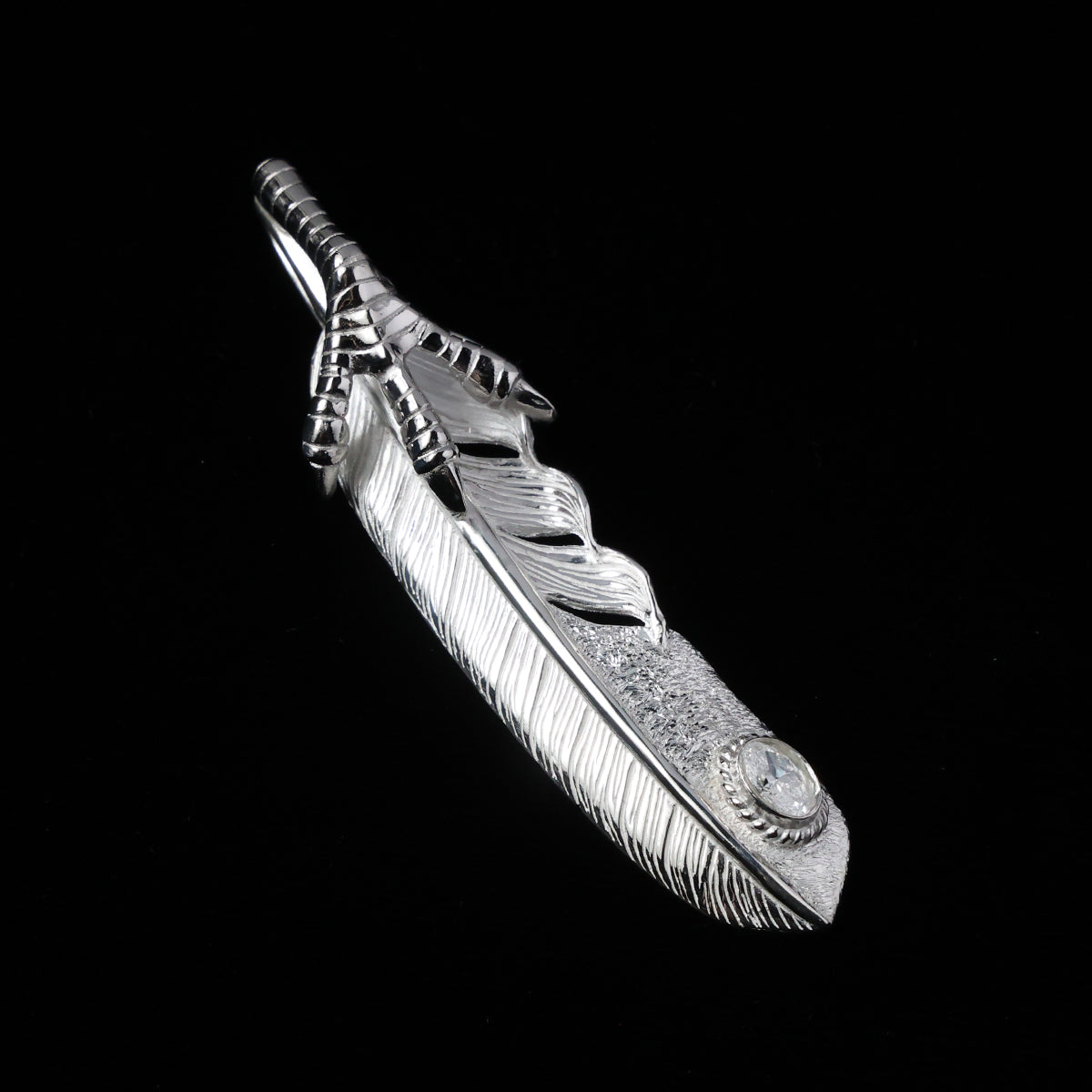 特大プラチナ爪フェザープラチナ縄"ラボグラウンダイヤモンド"(右向き)ダイヤモンド-ダスト加工