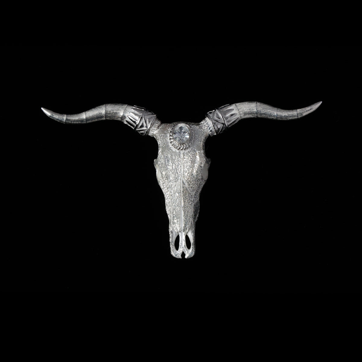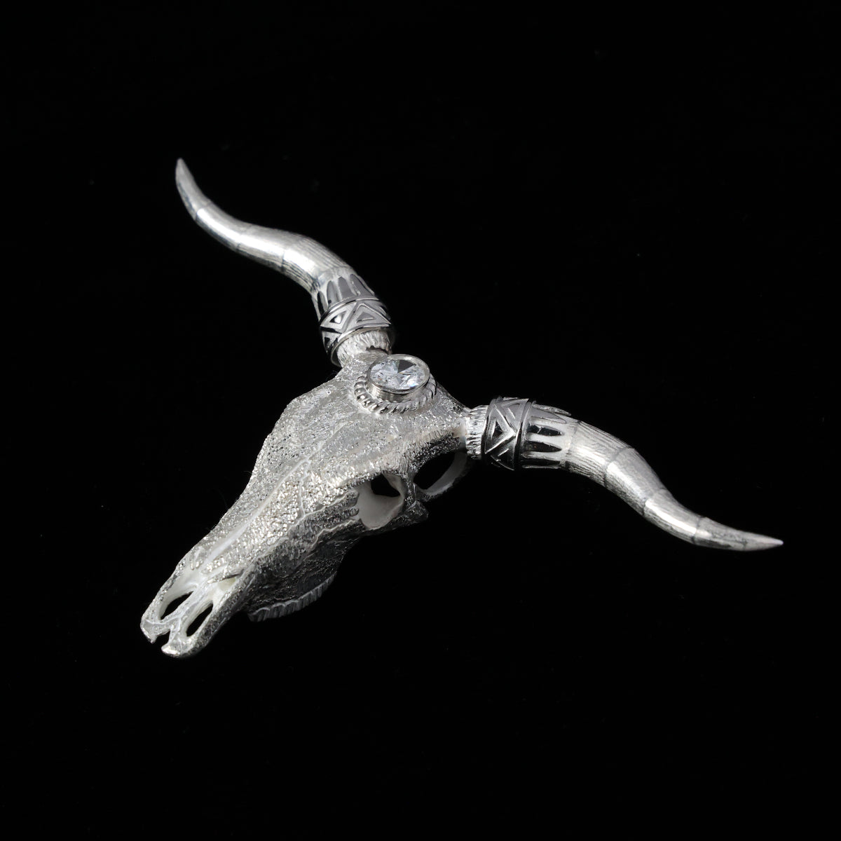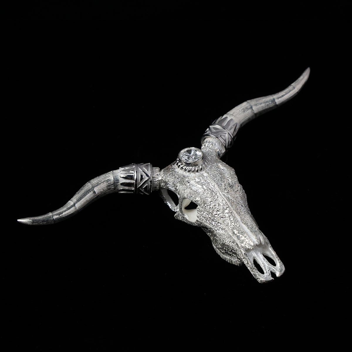 ロングホーンスカルペンダント大プラチナ縄"ラボグラウンダイヤモンド"〜SV角×プラチナ角パーツ(バンダナ)付き ダイヤモンド-ダスト加工〜