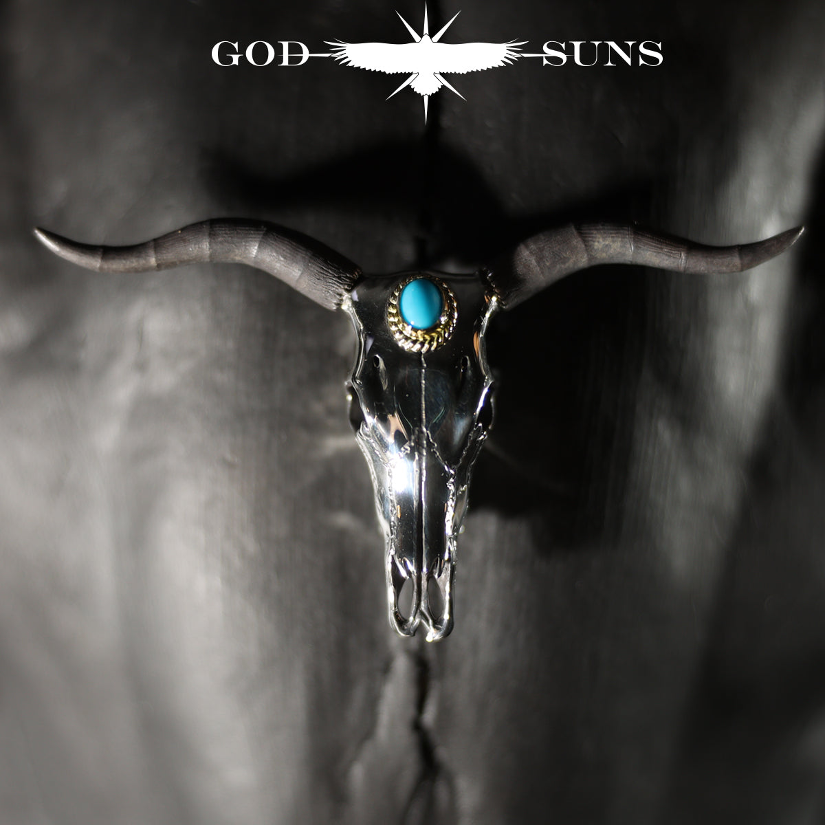 ロングホーンスカルペンダント金縄TQ ~SV角タイプ~ 大