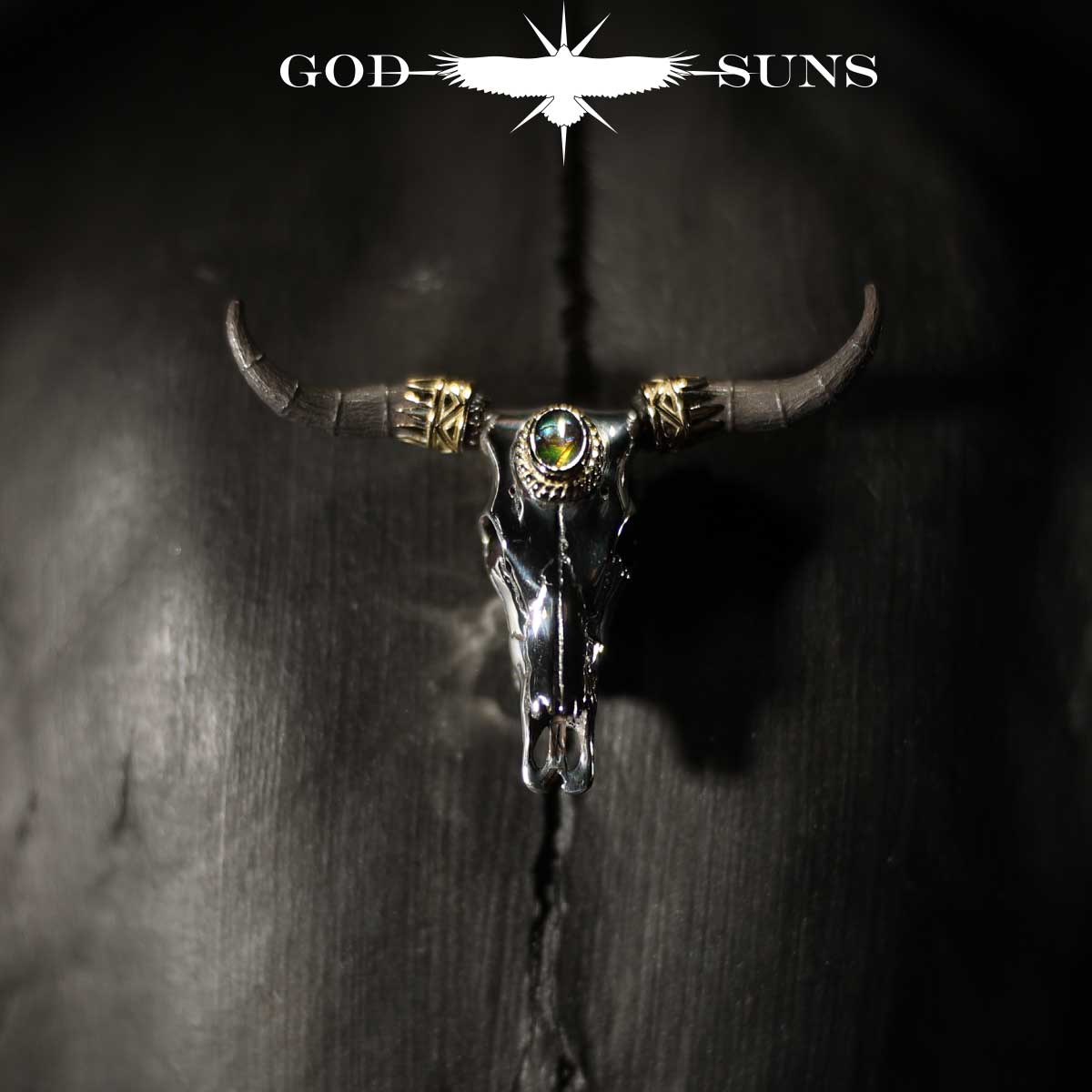 限定品 ロングホーンスカルペンダント金縄アンモライト~SV角タイプ×K18角パーツ(バンダナ)付き~中