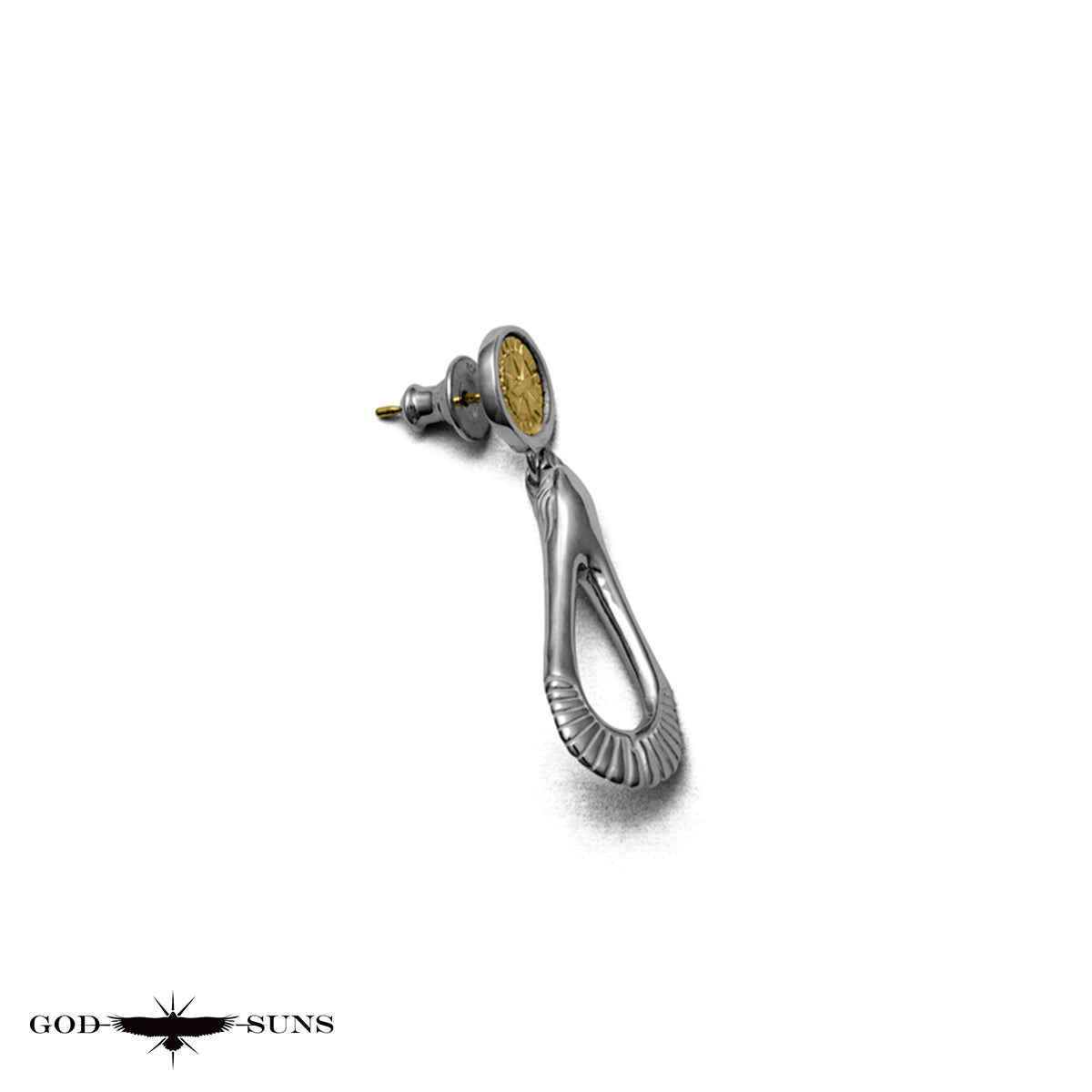 イーグルサンバースト印台 K18 太陽彫りメタル付きピアス(雌鷲) 中