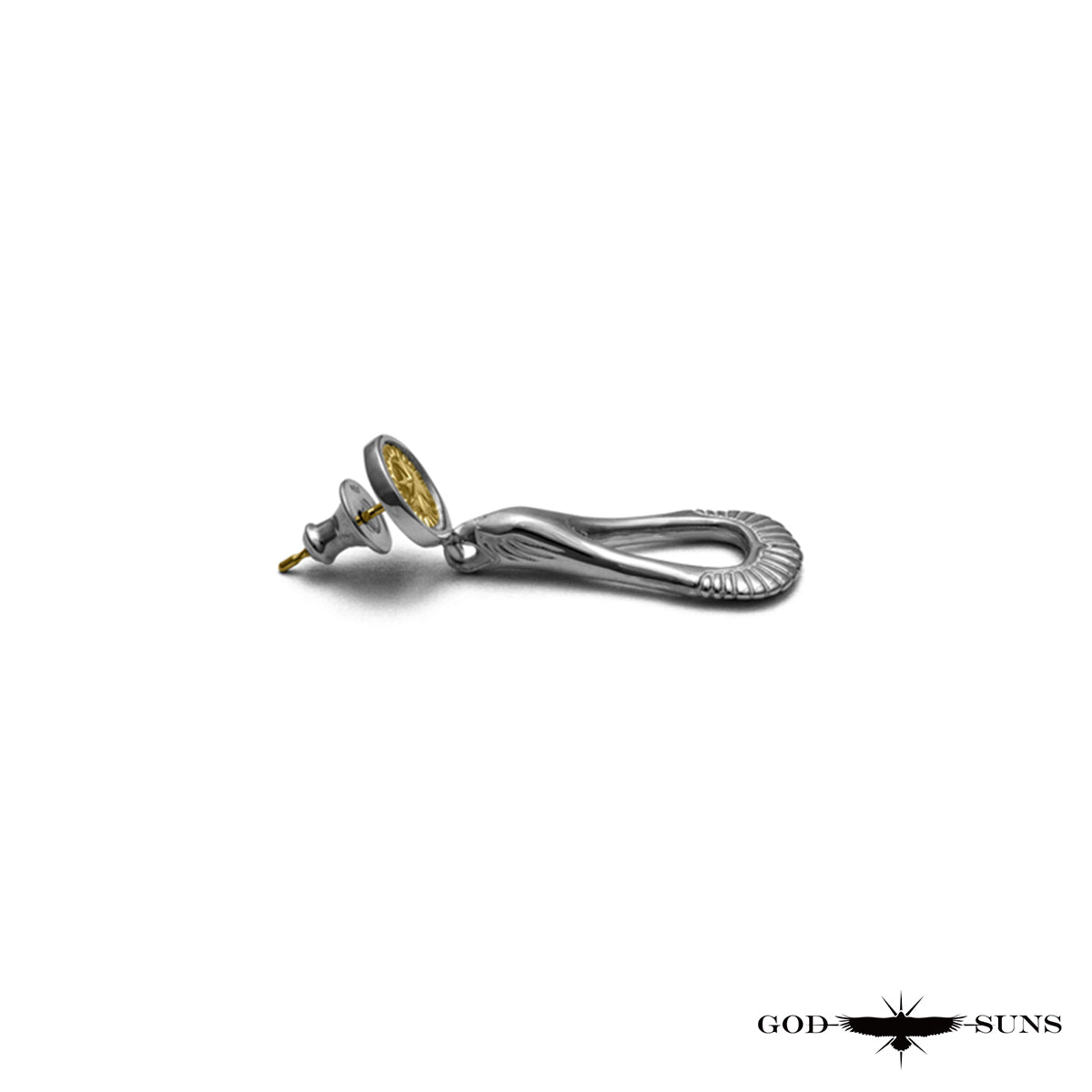 イーグルサンバースト印台 K18 太陽彫りメタル付きピアス(雄鷲) 中