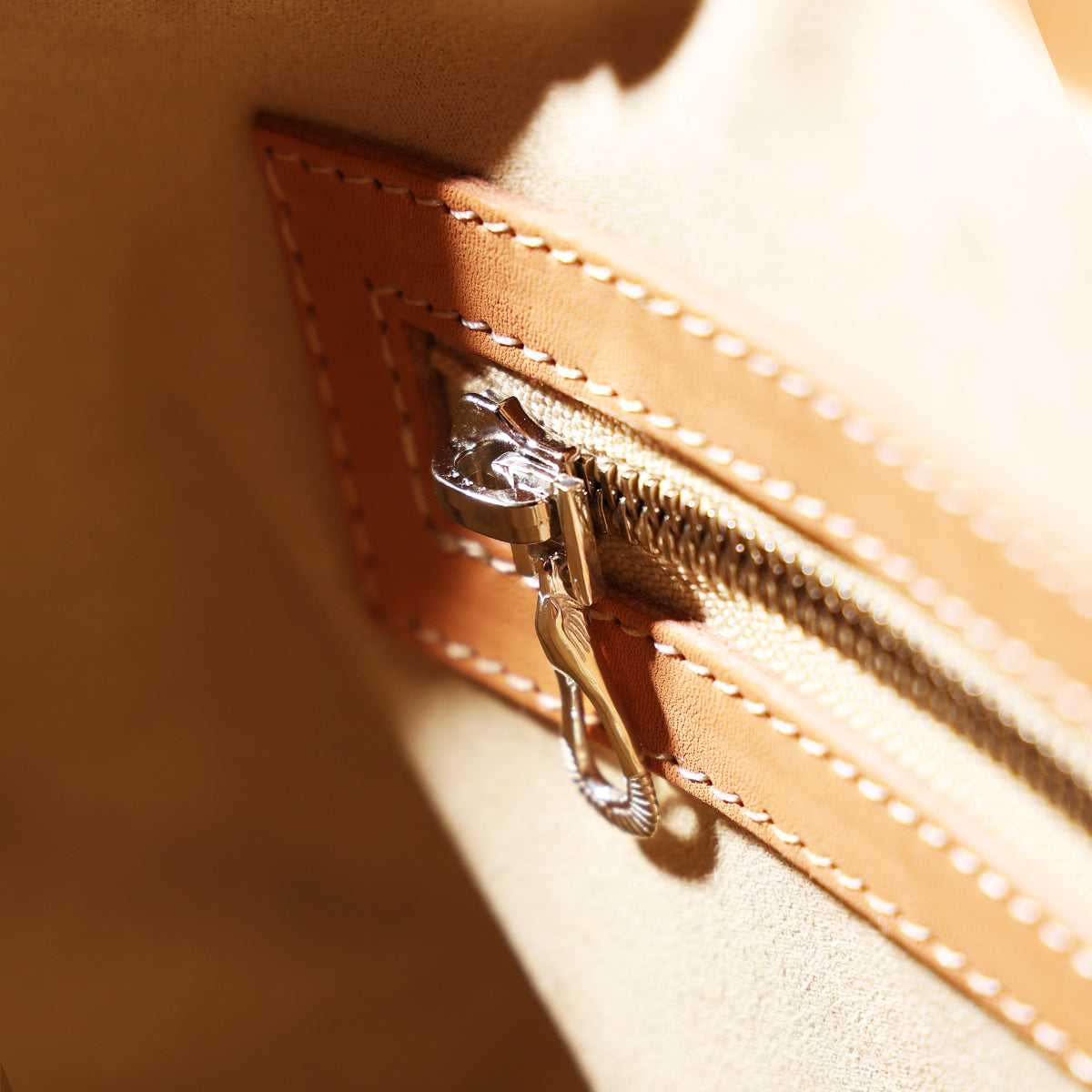 栃木レザートートバッグ 小 自社オリジナル制作ファスナー”イーグルサンバースト”SV950製付属 生成り
