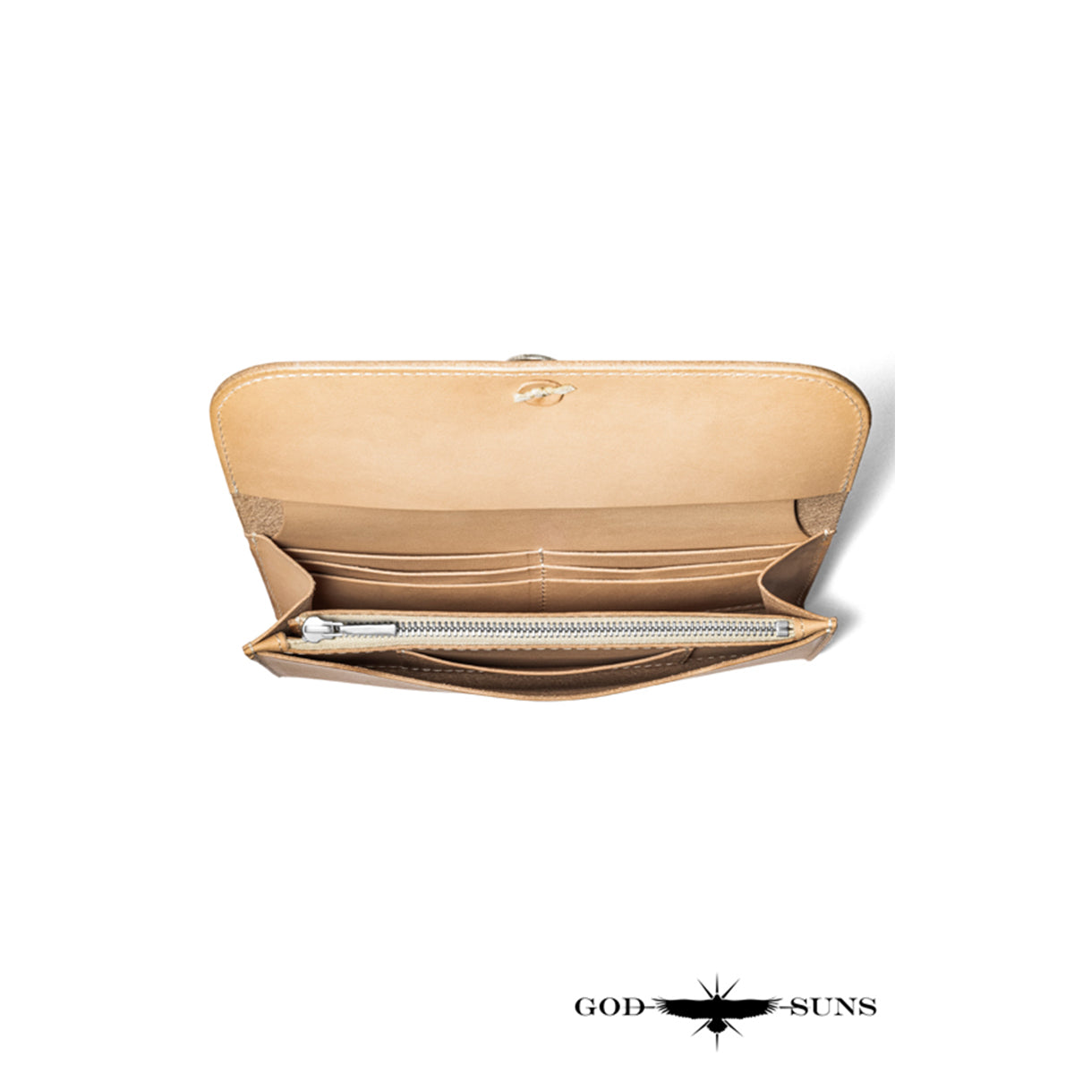 "栃木レザー"ロングウォレット ミシン縫い SV950オリジナルコインコンチョ付き 生成り