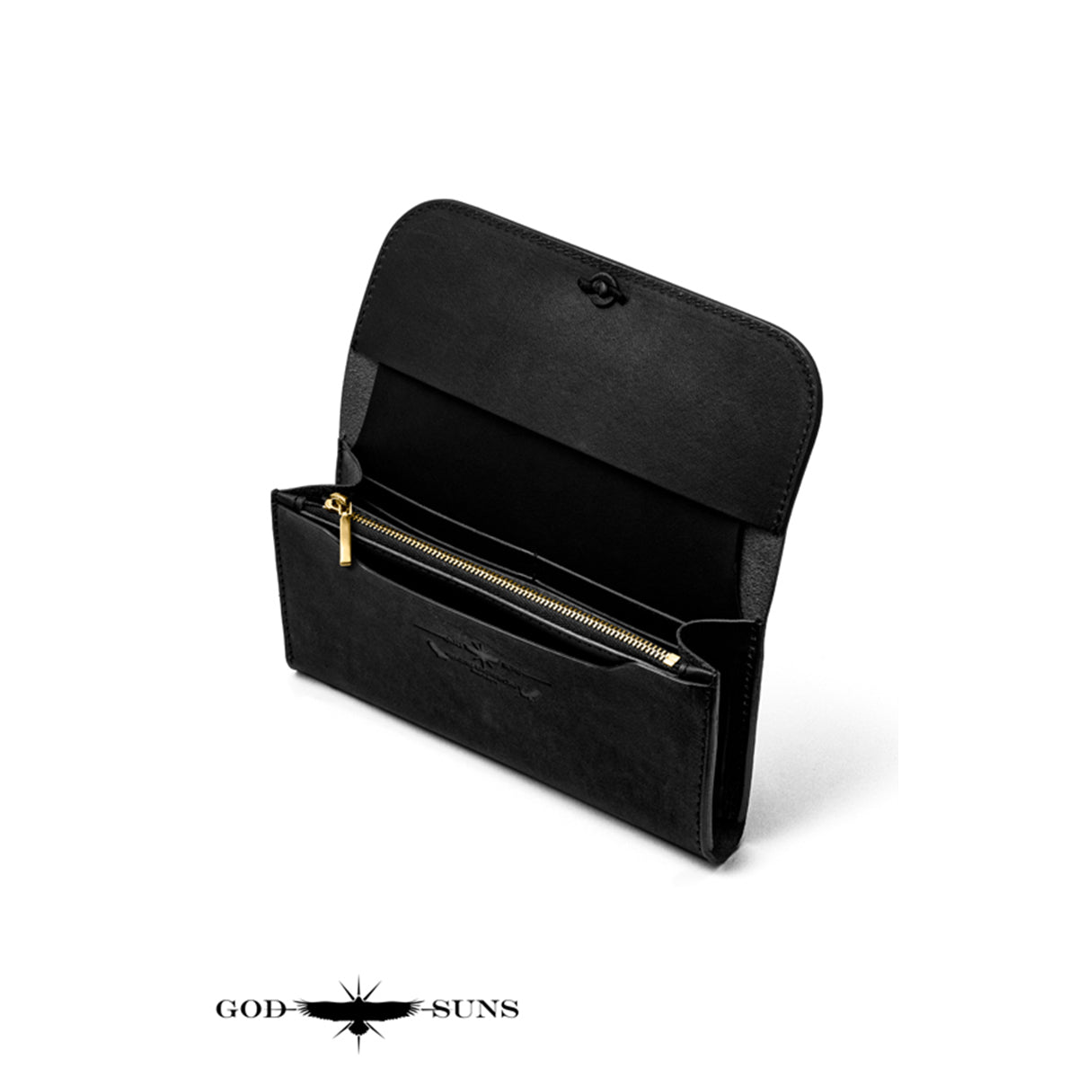 "栃木レザー"ロングウォレット ミシン縫い K18無垢オリジナルコインコンチョ付き~K18無垢ファスナー&ビーズセット 最上級モデル~ 黒