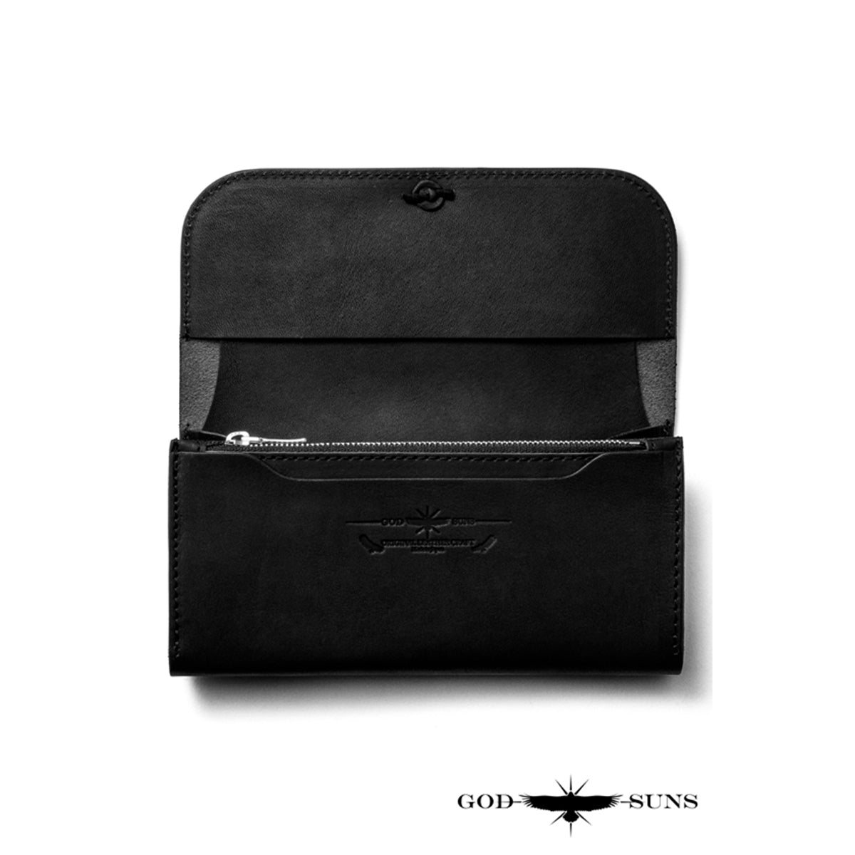 "栃木レザー"ロングウォレット ミシン縫い SV950オリジナルコインコンチョ付き 黒