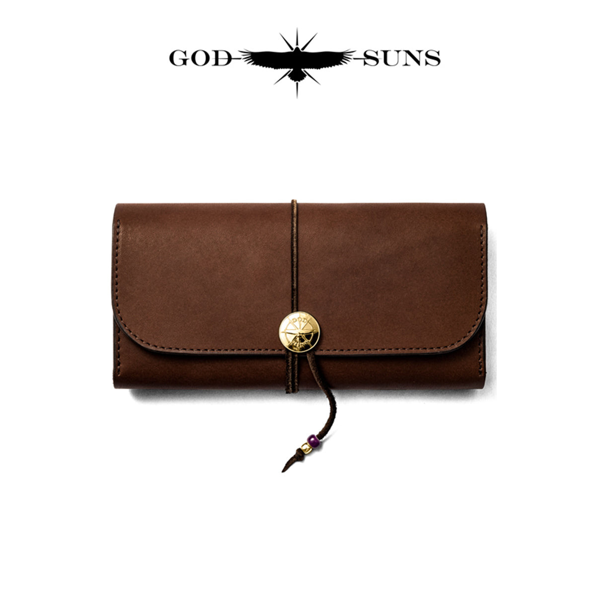"栃木レザー"ロングウォレット ミシン縫い K18無垢オリジナルコインコンチョ付き~K18無垢ファスナー&ビーズセット 最上級モデル~ 茶