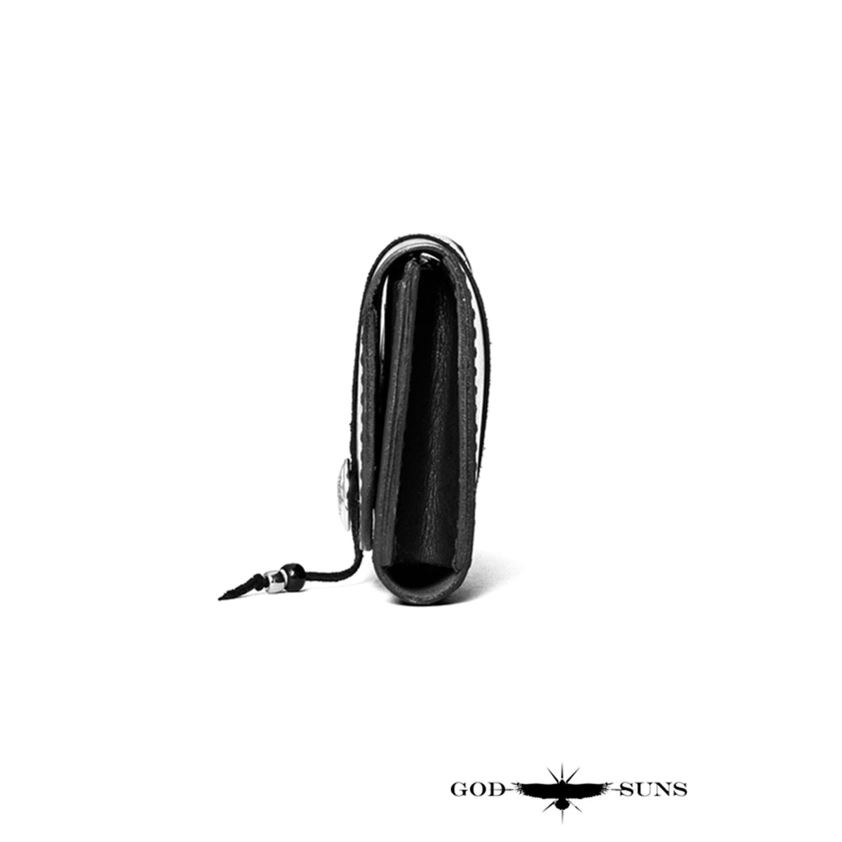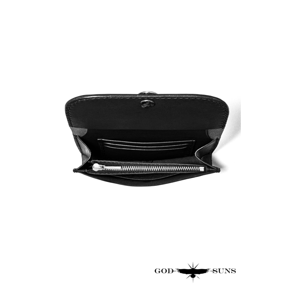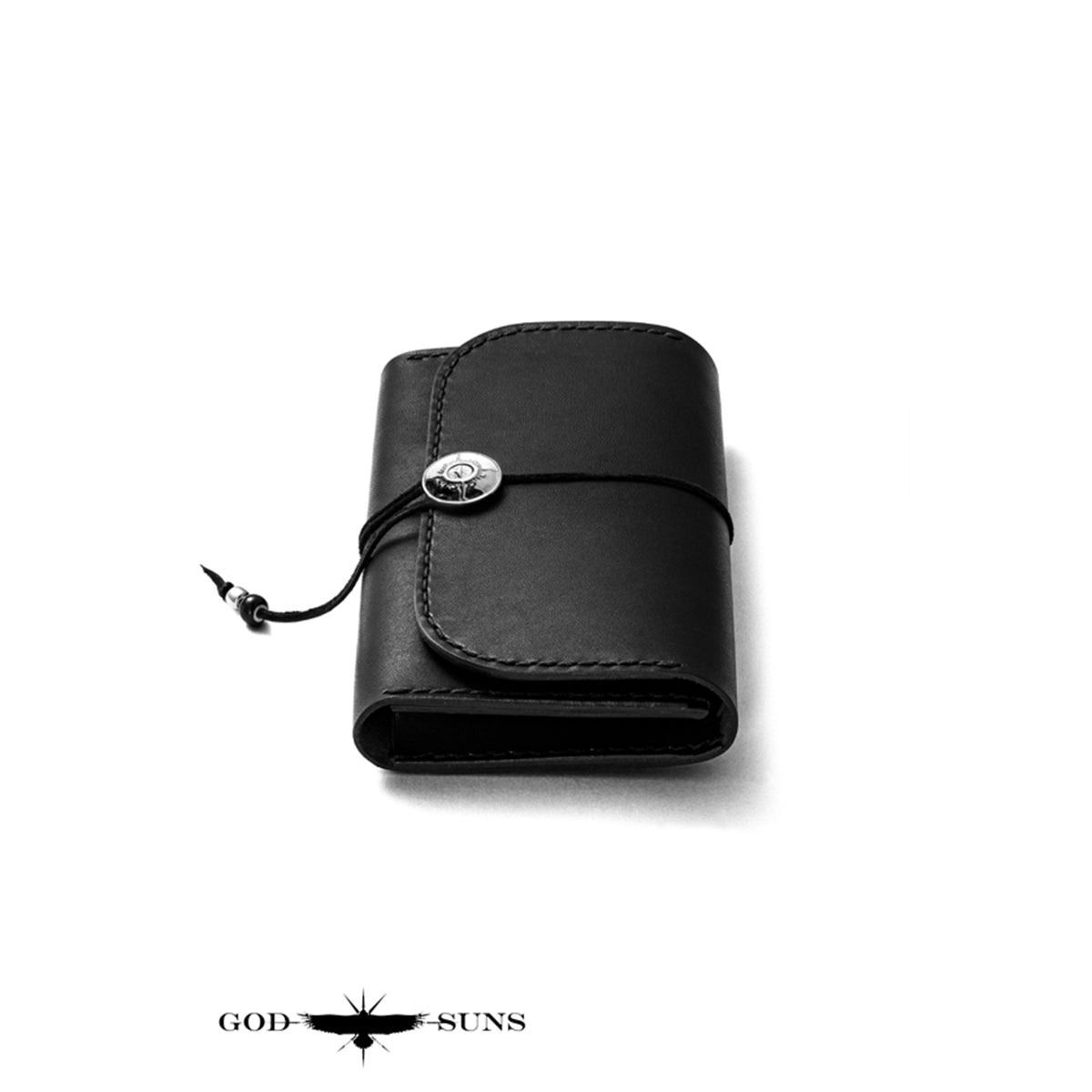 "栃木レザー"ミドルウォレット 手縫い SV950オリジナルコインコンチョ付き 黒