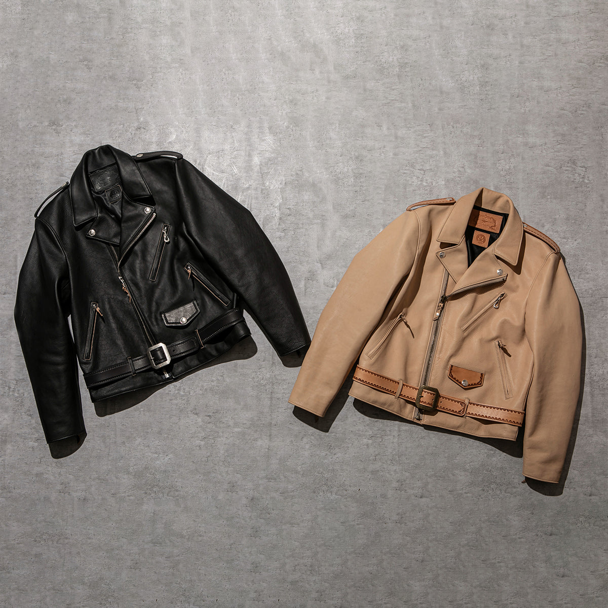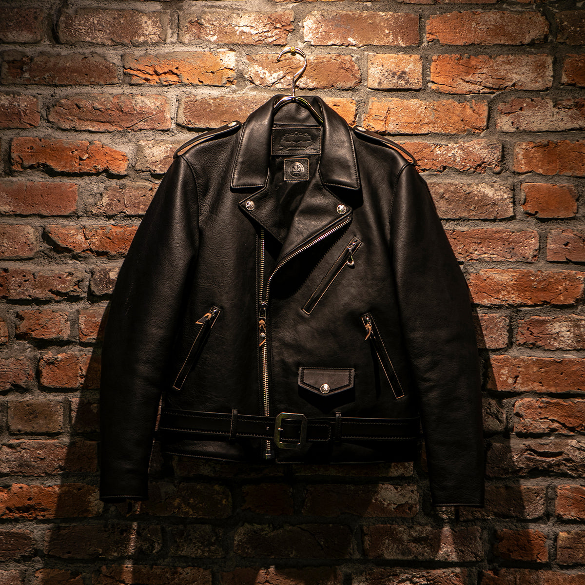コラボダブルライダースのノーマルモデル・ブラックバージョンはアメカジにもモードスタイルにも馴染む洗練されたシルエット。