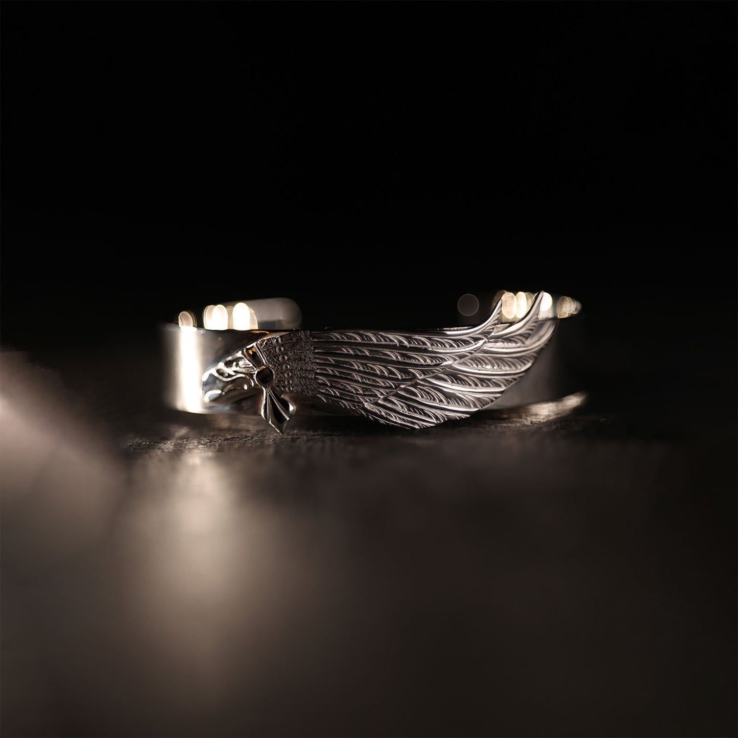 “イーグルインディアン”シングルプレート平打ちバングル 〜全銀〜ALL SV TYPE 雌鷲モデル 12mm 左腕用